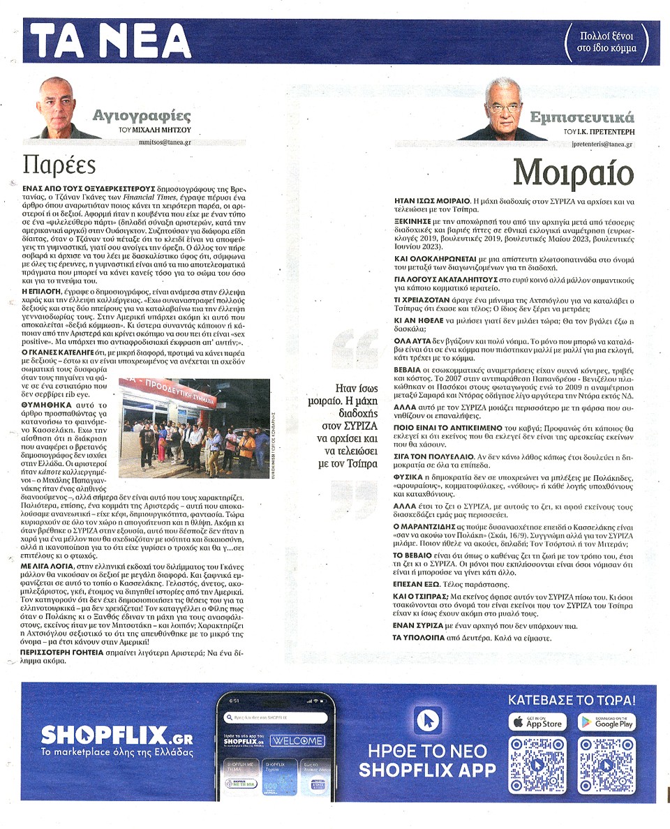 ΤΑ ΝΕΑ - 22 Σεπτεμβρίου 2023