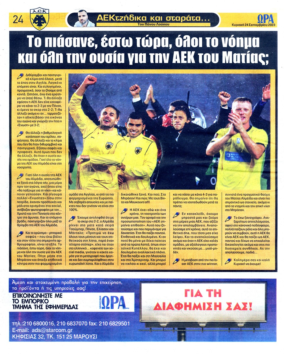 ΑΘΛΗΤΙΚΗ ΩΡΑ ΤΩΝ ΣΠΟΡ - 24 Σεπτεμβρίου 2023