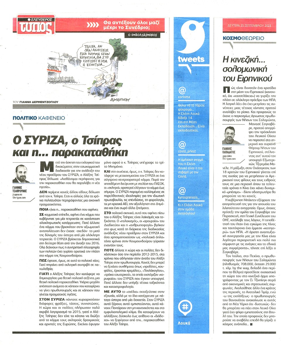 ΕΛΕΥΘΕΡΟΣ ΤΥΠΟΣ - 25 Σεπτεμβρίου 2023