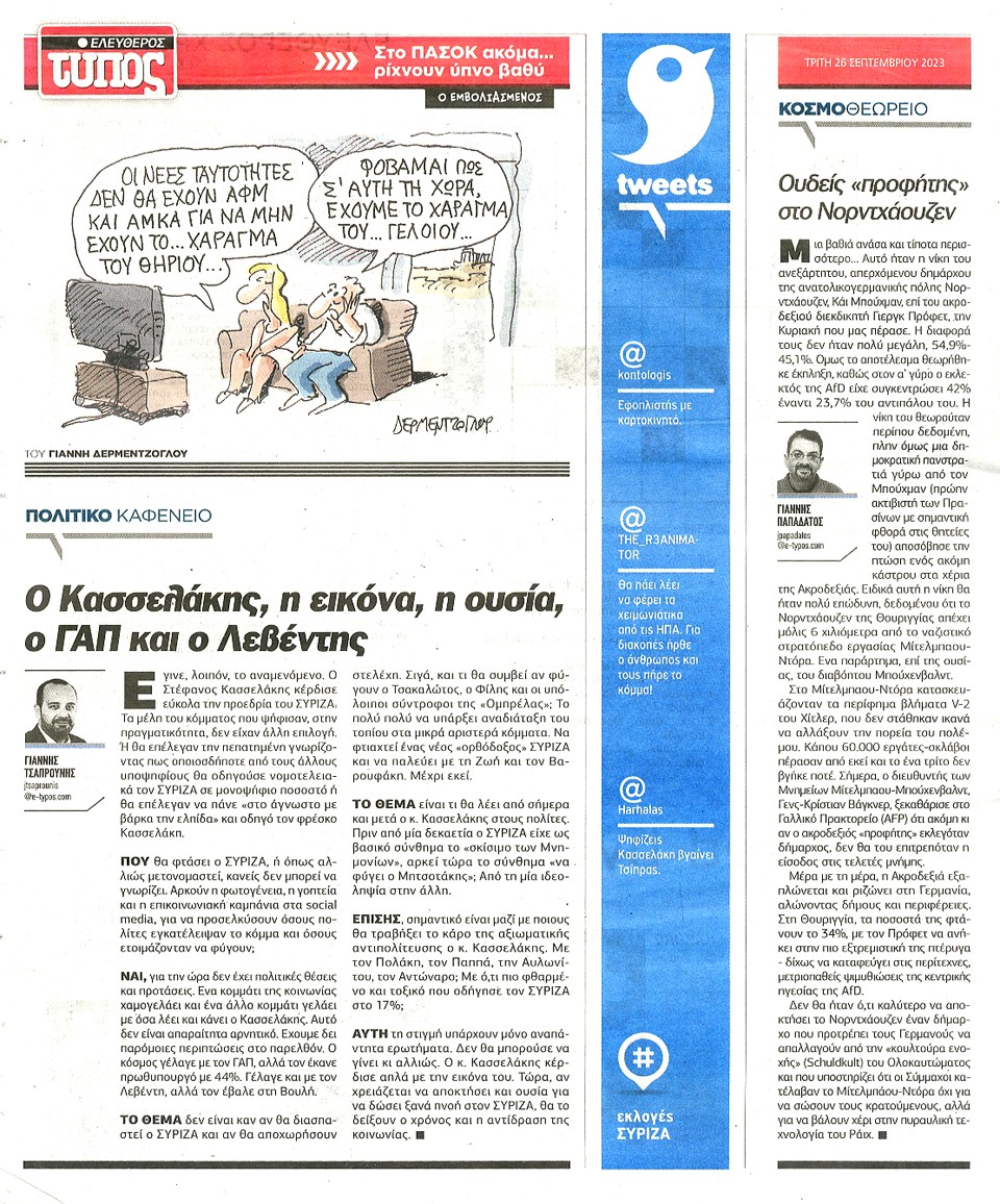 ΕΛΕΥΘΕΡΟΣ ΤΥΠΟΣ - 26 Σεπτεμβρίου 2023