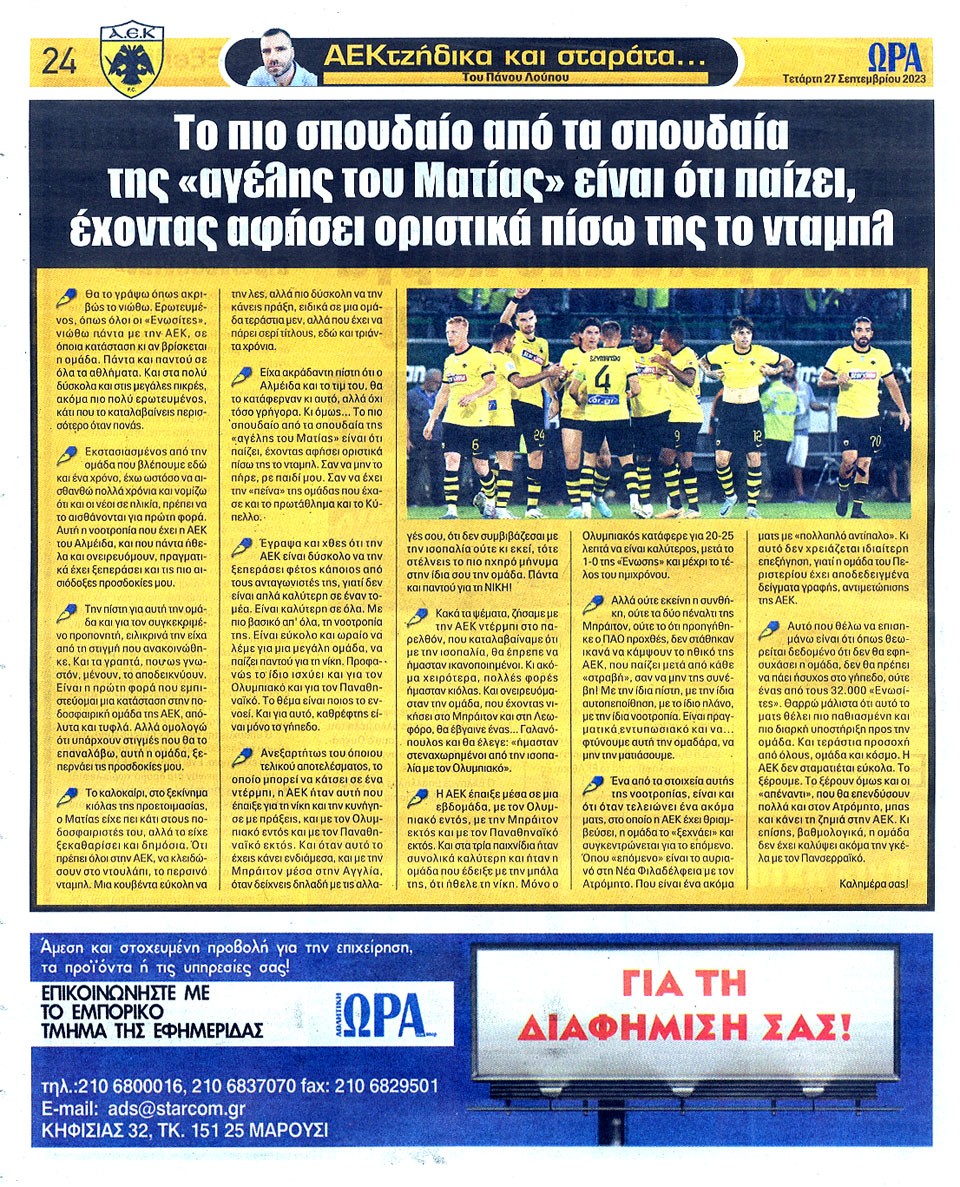 ΑΘΛΗΤΙΚΗ ΩΡΑ ΤΩΝ ΣΠΟΡ - 27 Σεπτεμβρίου 2023