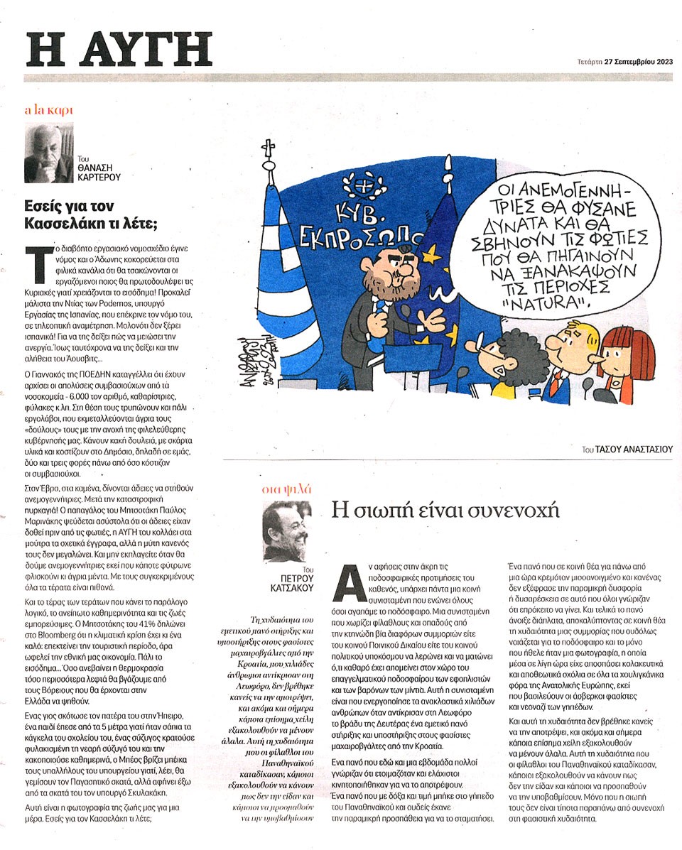 Η ΑΥΓΗ - 27 Σεπτεμβρίου 2023