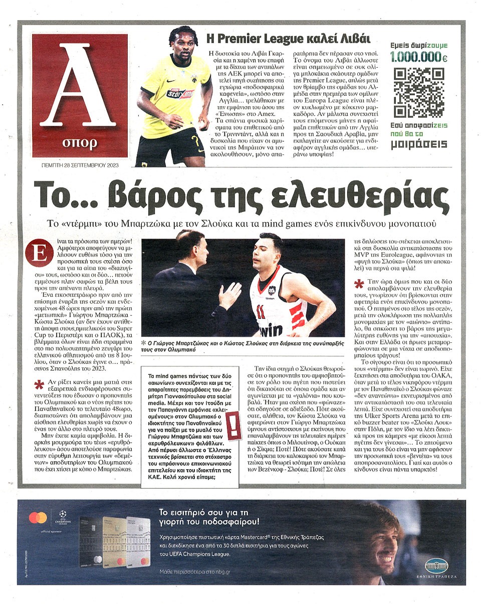 ΑΠΟΓΕΥΜΑΤΙΝΗ - 28 Σεπτεμβρίου 2023