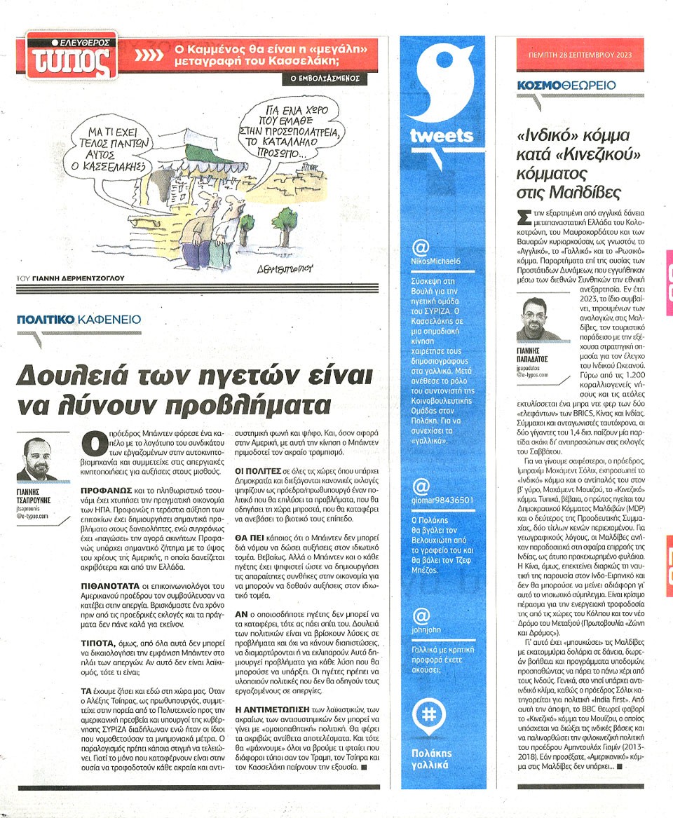 ΕΛΕΥΘΕΡΟΣ ΤΥΠΟΣ - 28 Σεπτεμβρίου 2023