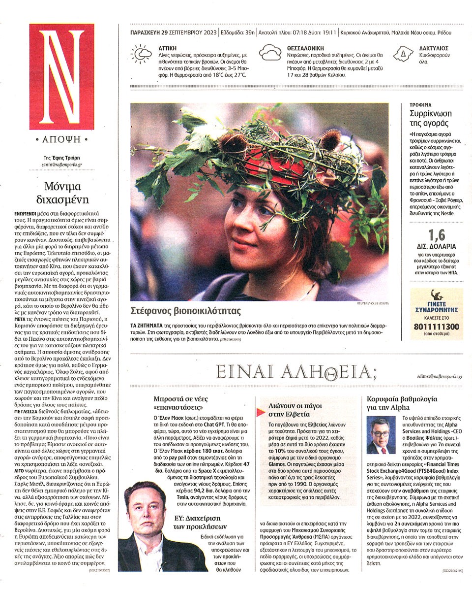 ΝΑΥΤΕΜΠΟΡΙΚΗ - 29 Σεπτεμβρίου 2023