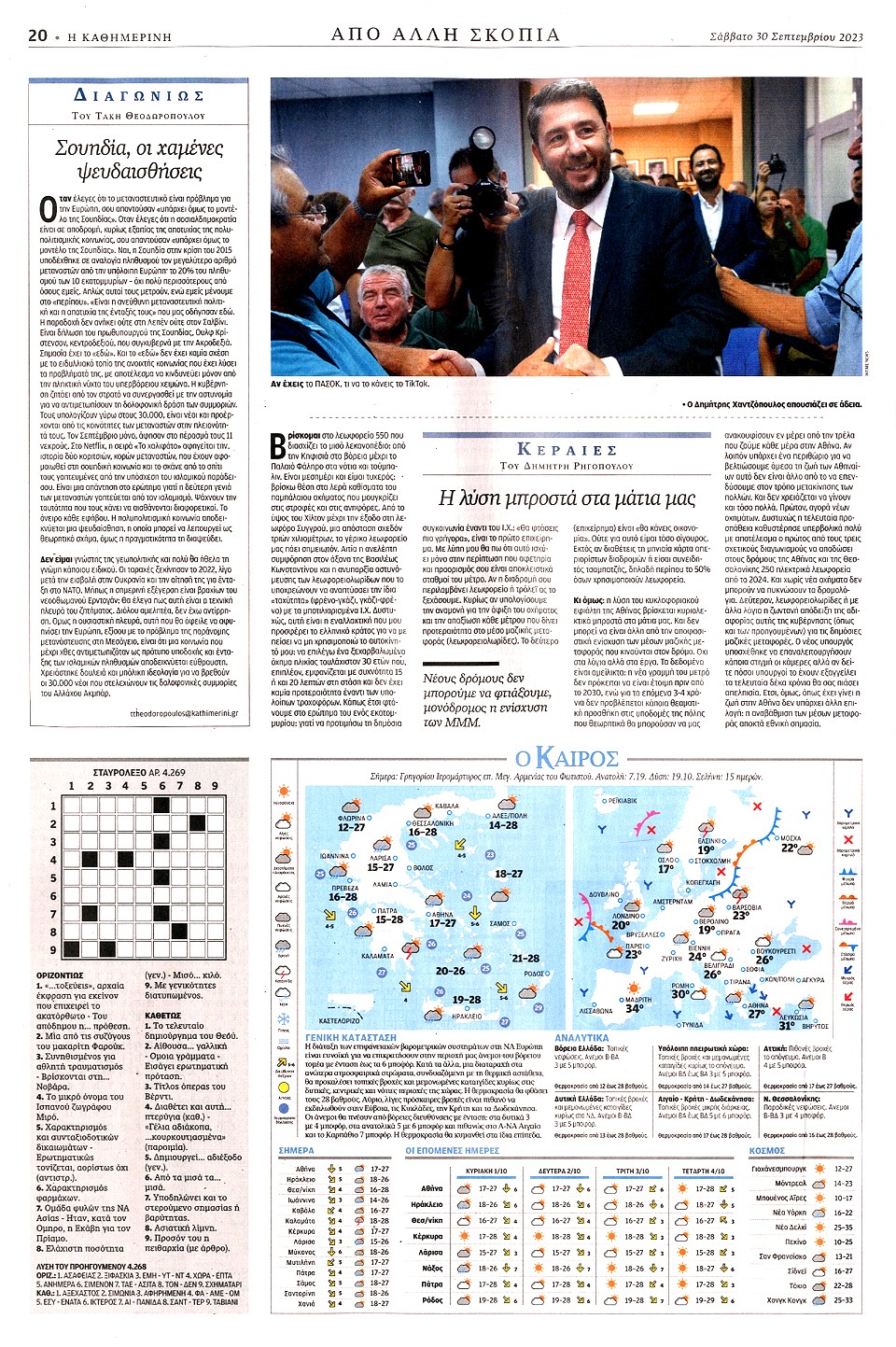 ΚΑΘΗΜΕΡΙΝΗ - 30 Σεπτεμβρίου 2023
