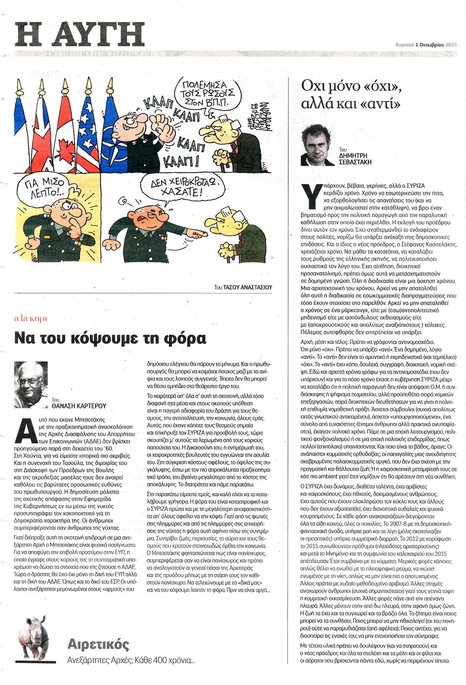 Η ΑΥΓΗ ΤΗΣ ΚΥΡΙΑΚΗΣ - 01 Οκτωβρίου 2023