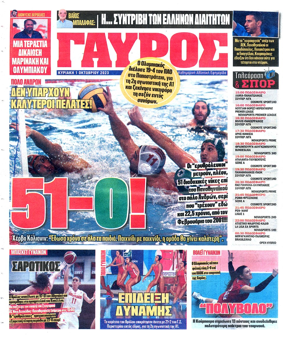 ΠΡΩΤΑΘΛΗΤΗΣ - 01 Οκτωβρίου 2023