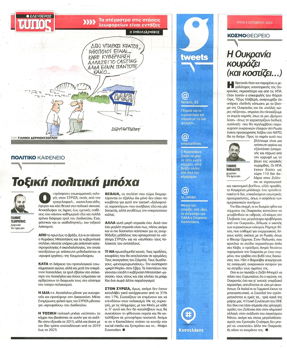 ΕΛΕΥΘΕΡΟΣ ΤΥΠΟΣ - 03 Οκτωβρίου 2023