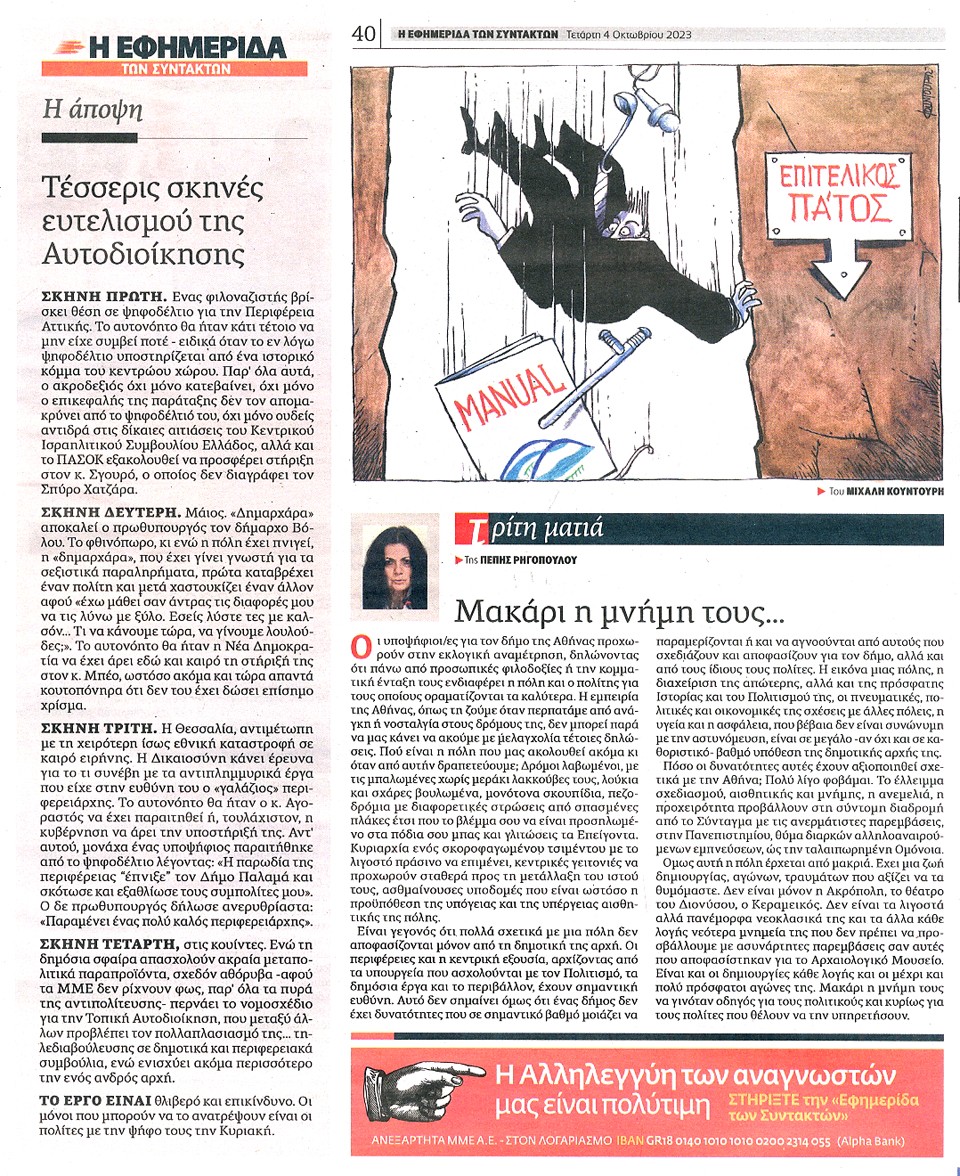 Η ΕΦΗΜΕΡΙΔΑ ΤΩΝ ΣΥΝΤΑΚΤΩΝ - 04 Οκτωβρίου 2023