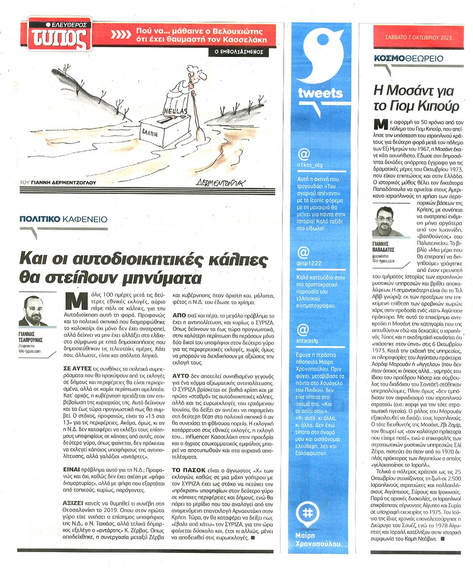 ΕΛΕΥΘΕΡΟΣ ΤΥΠΟΣ - 07 Οκτωβρίου 2023