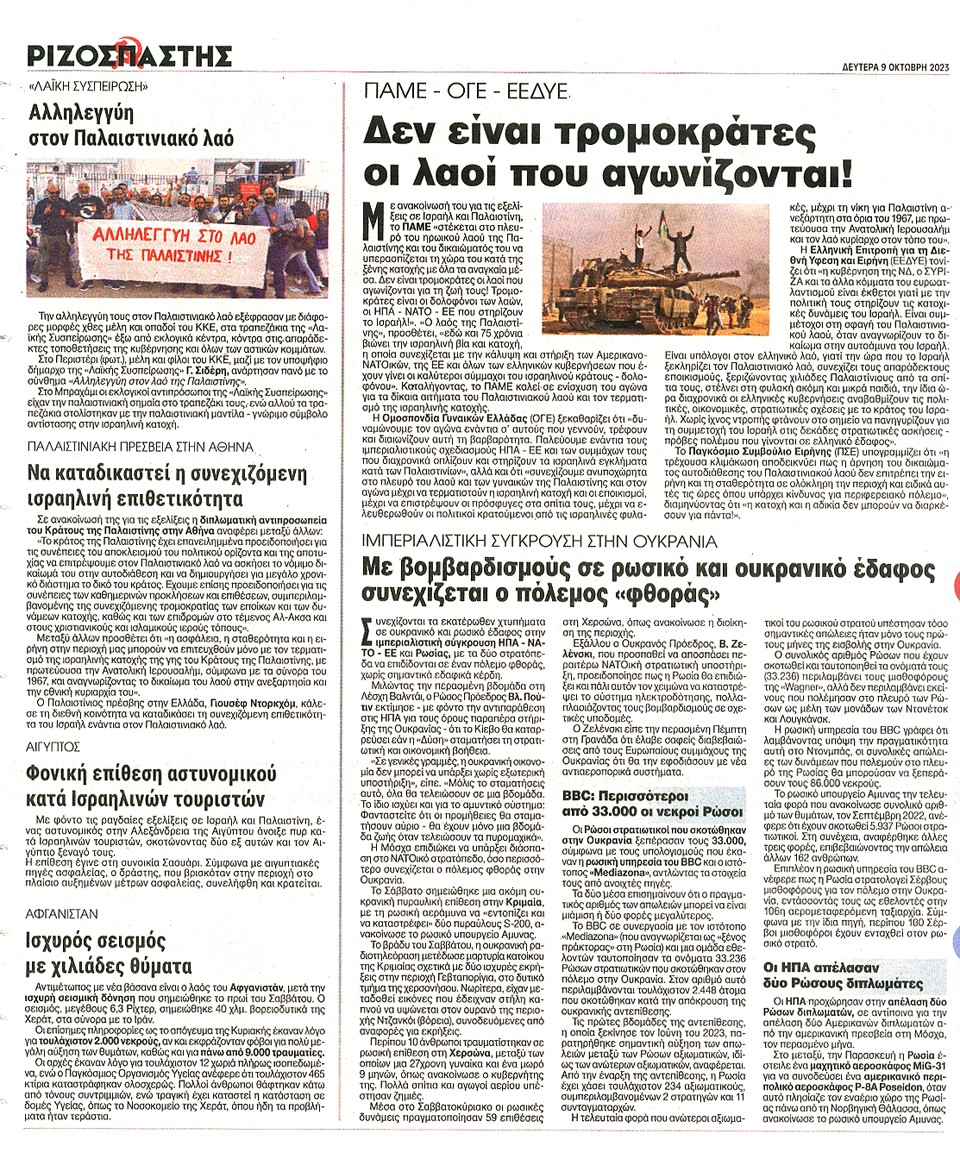 ΡΙΖΟΣΠΑΣΤΗΣ - 09 Οκτωβρίου 2023