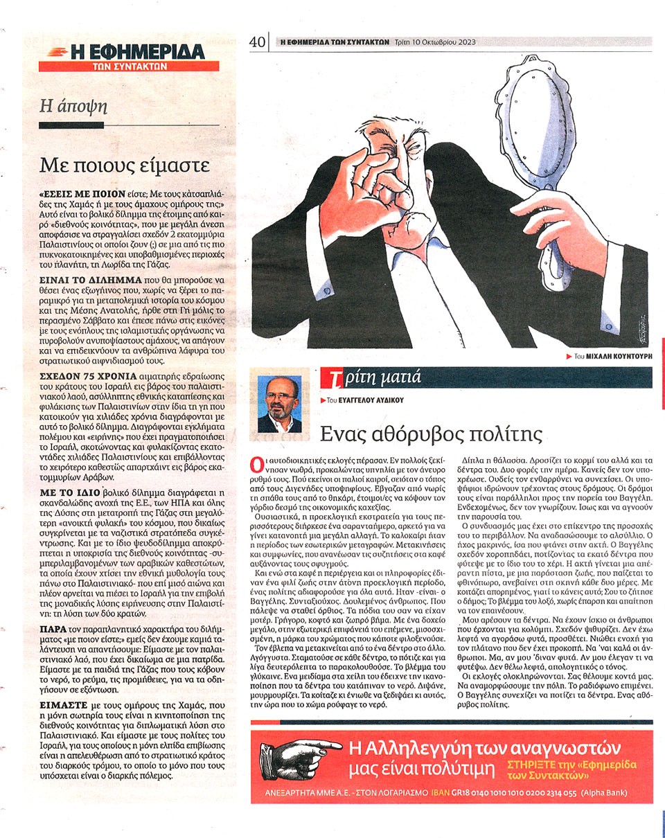 Η ΕΦΗΜΕΡΙΔΑ ΤΩΝ ΣΥΝΤΑΚΤΩΝ - 10 Οκτωβρίου 2023