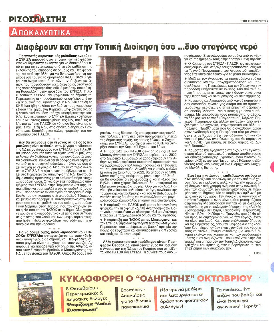 ΡΙΖΟΣΠΑΣΤΗΣ - 10 Οκτωβρίου 2023