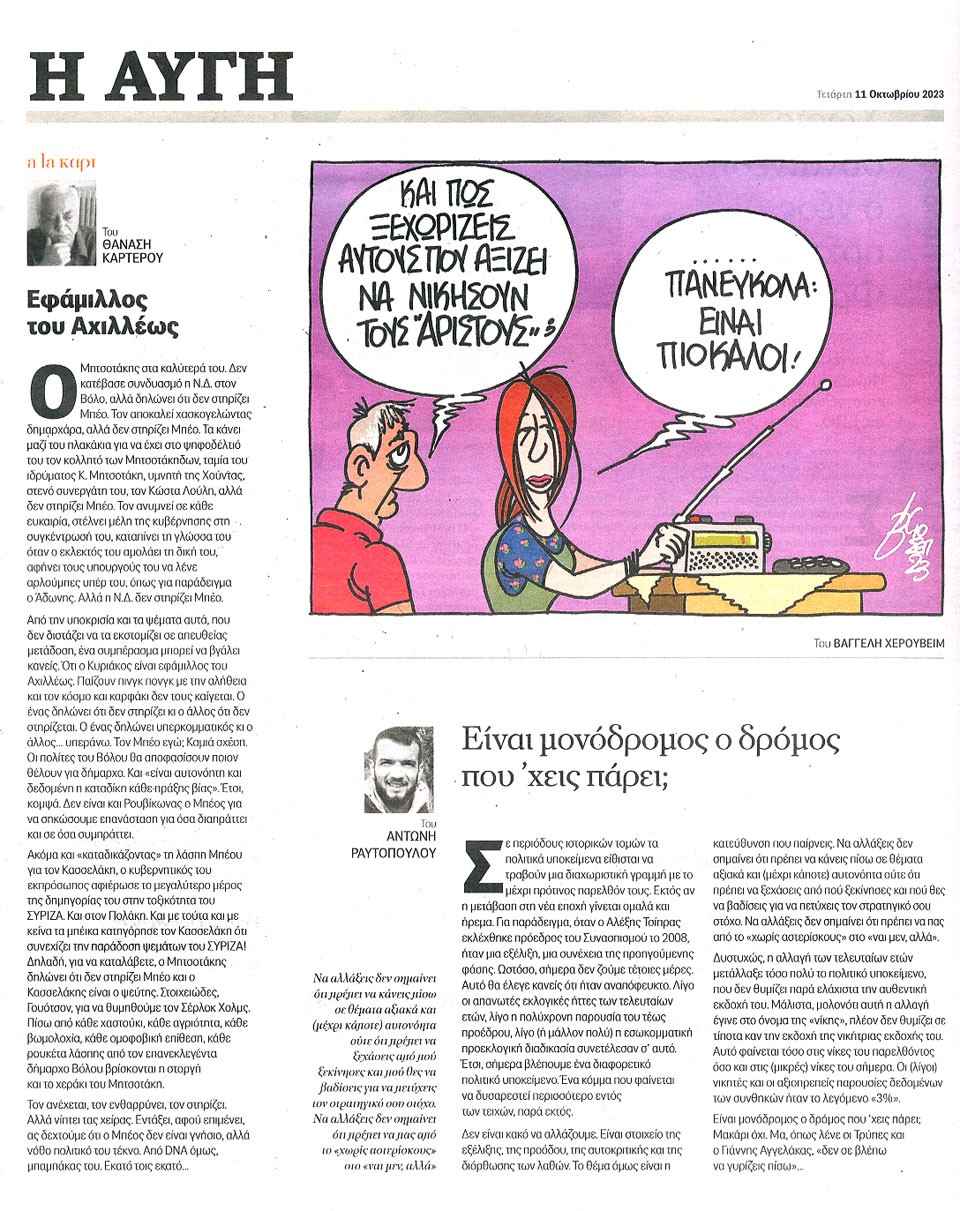 Η ΑΥΓΗ - 11 Οκτωβρίου 2023