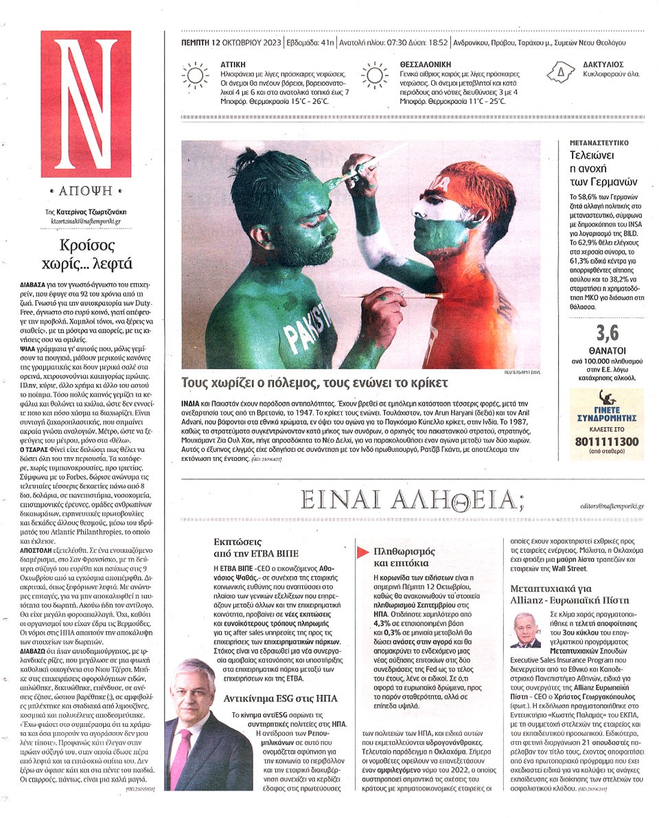 ΝΑΥΤΕΜΠΟΡΙΚΗ - 12 Οκτωβρίου 2023