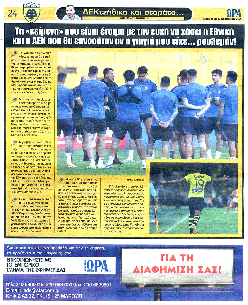 ΑΘΛΗΤΙΚΗ ΩΡΑ ΤΩΝ ΣΠΟΡ - 13 Οκτωβρίου 2023