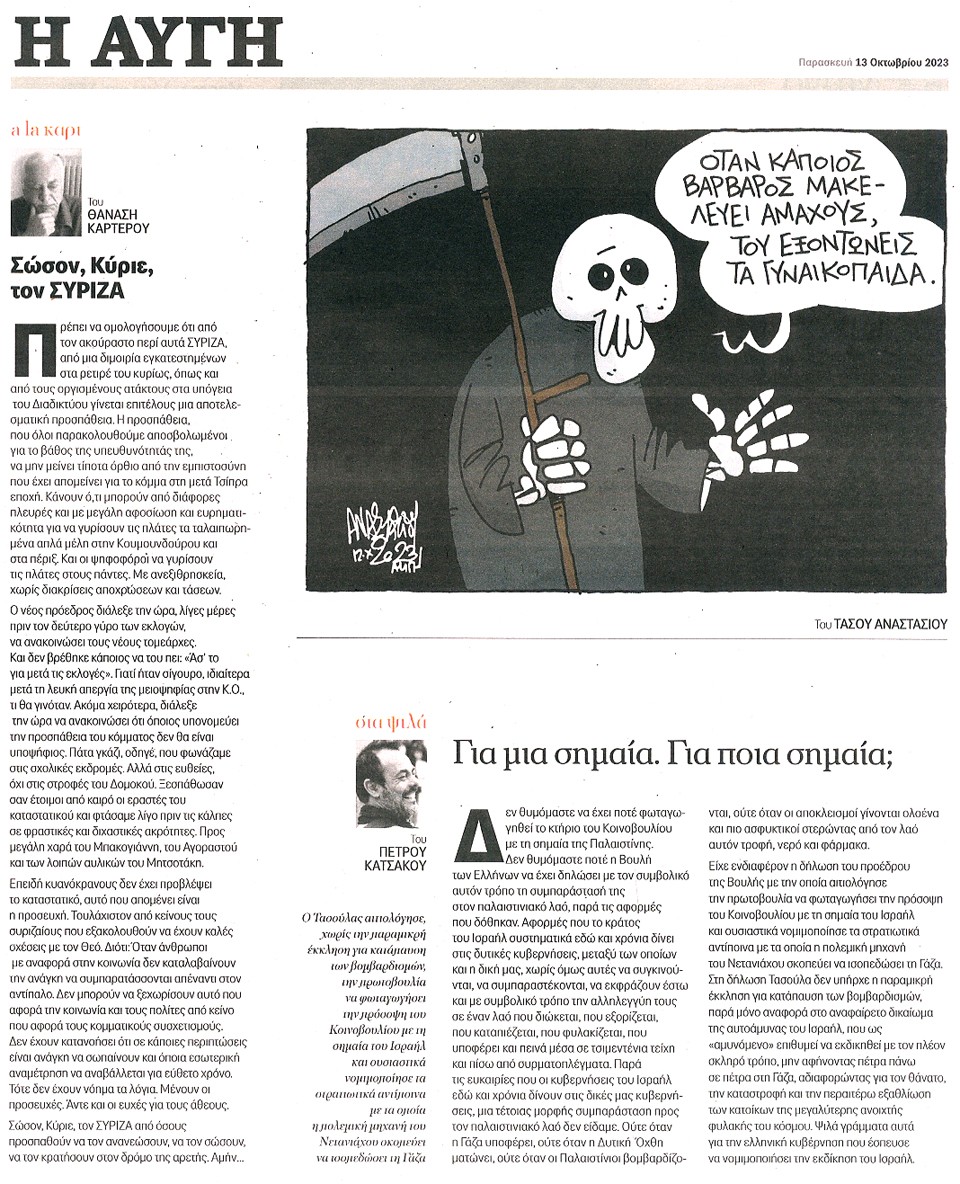 Η ΑΥΓΗ - 13 Οκτωβρίου 2023