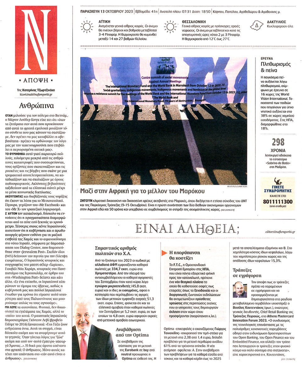 ΝΑΥΤΕΜΠΟΡΙΚΗ - 13 Οκτωβρίου 2023