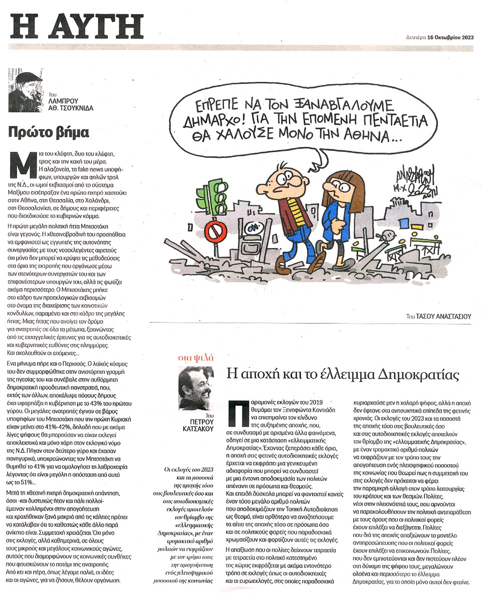Η ΑΥΓΗ - 16 Οκτωβρίου 2023