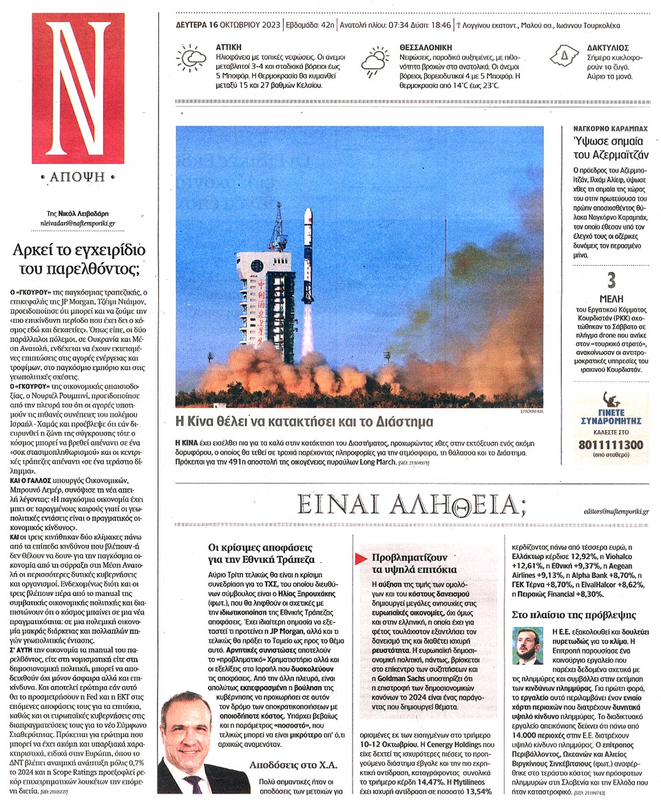 ΝΑΥΤΕΜΠΟΡΙΚΗ - 16 Οκτωβρίου 2023