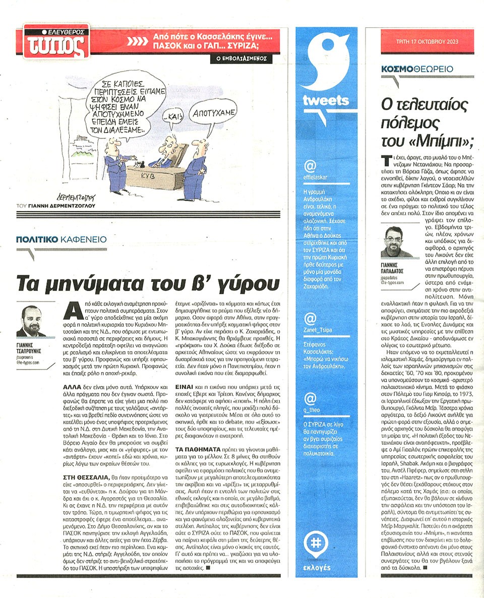 ΕΛΕΥΘΕΡΟΣ ΤΥΠΟΣ - 17 Οκτωβρίου 2023