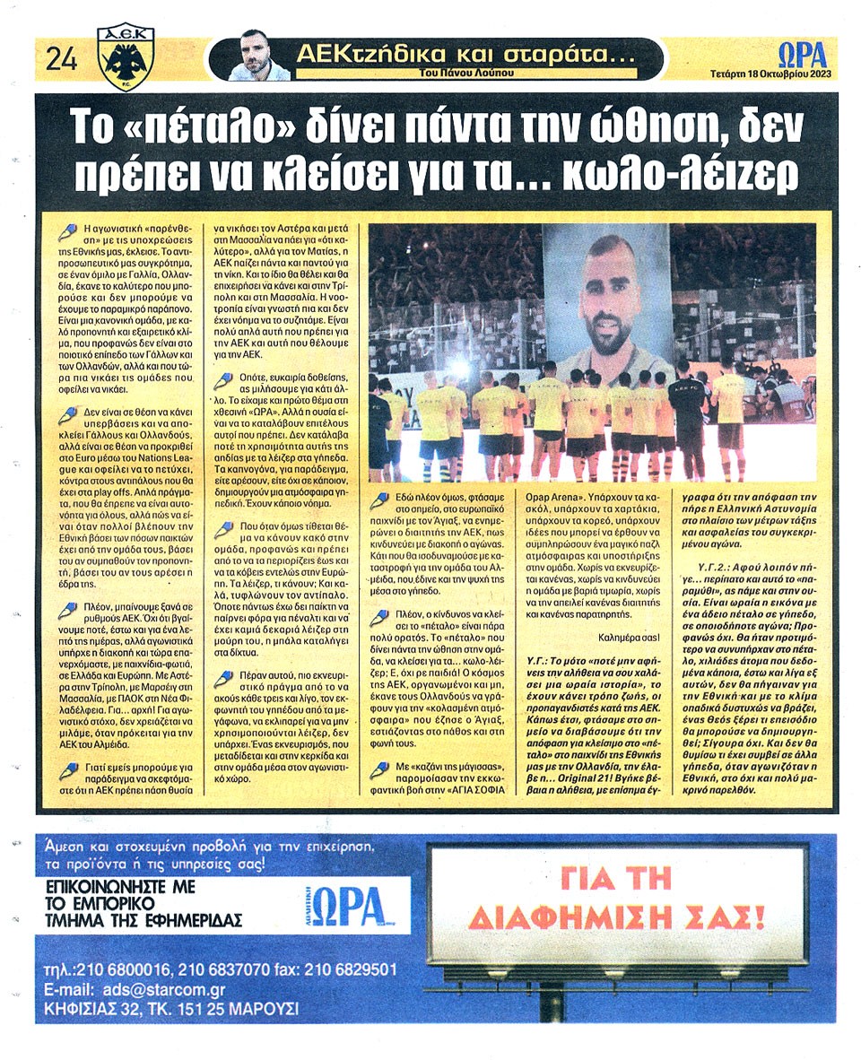 ΑΘΛΗΤΙΚΗ ΩΡΑ ΤΩΝ ΣΠΟΡ - 18 Οκτωβρίου 2023