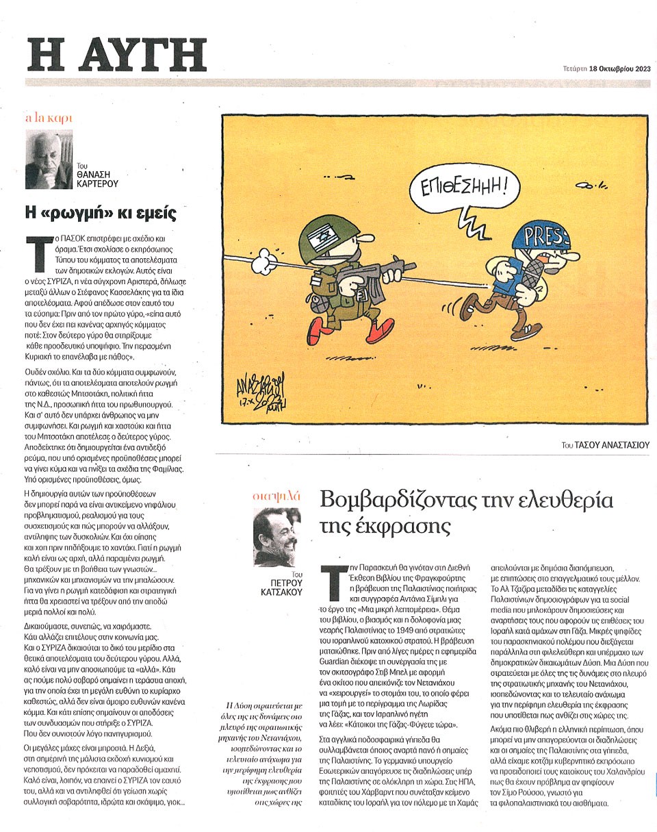 Η ΑΥΓΗ - 18 Οκτωβρίου 2023