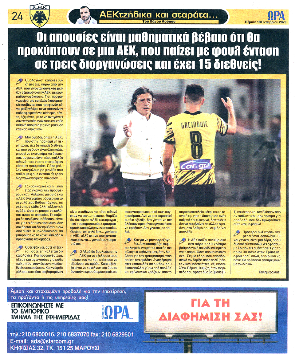 ΑΘΛΗΤΙΚΗ ΩΡΑ ΤΩΝ ΣΠΟΡ - 19 Οκτωβρίου 2023