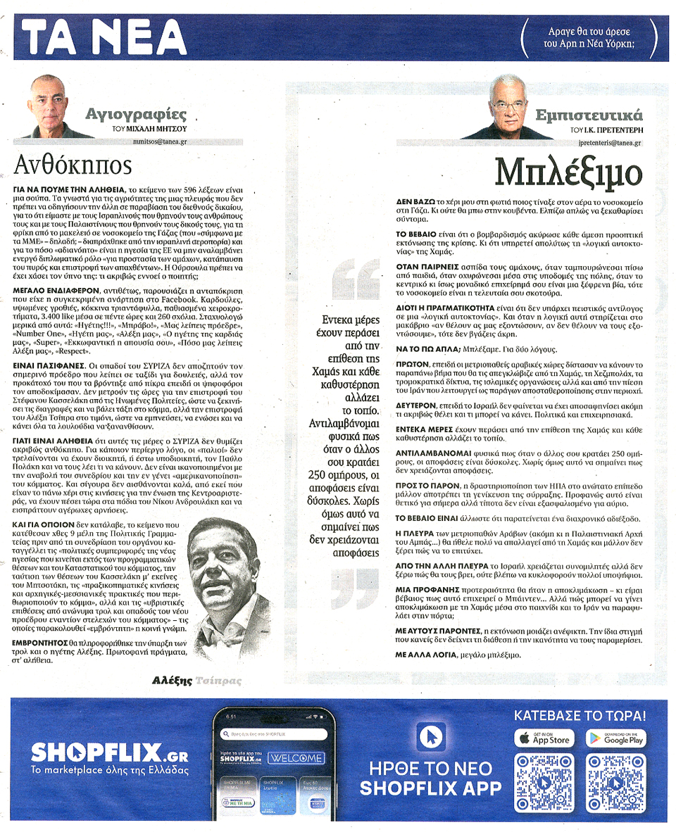 ΤΑ ΝΕΑ - 19 Οκτωβρίου 2023