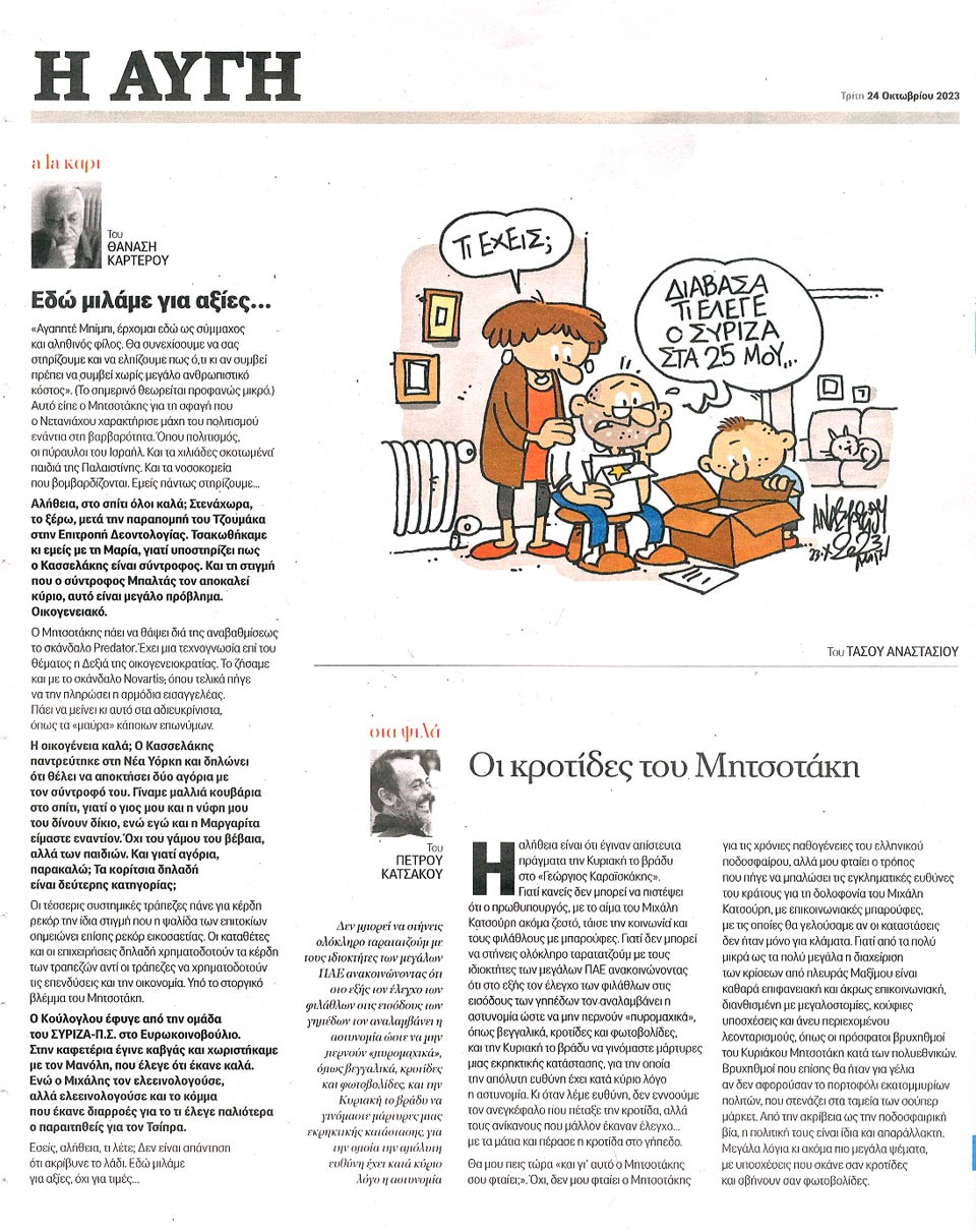 Η ΑΥΓΗ - 24 Οκτωβρίου 2023
