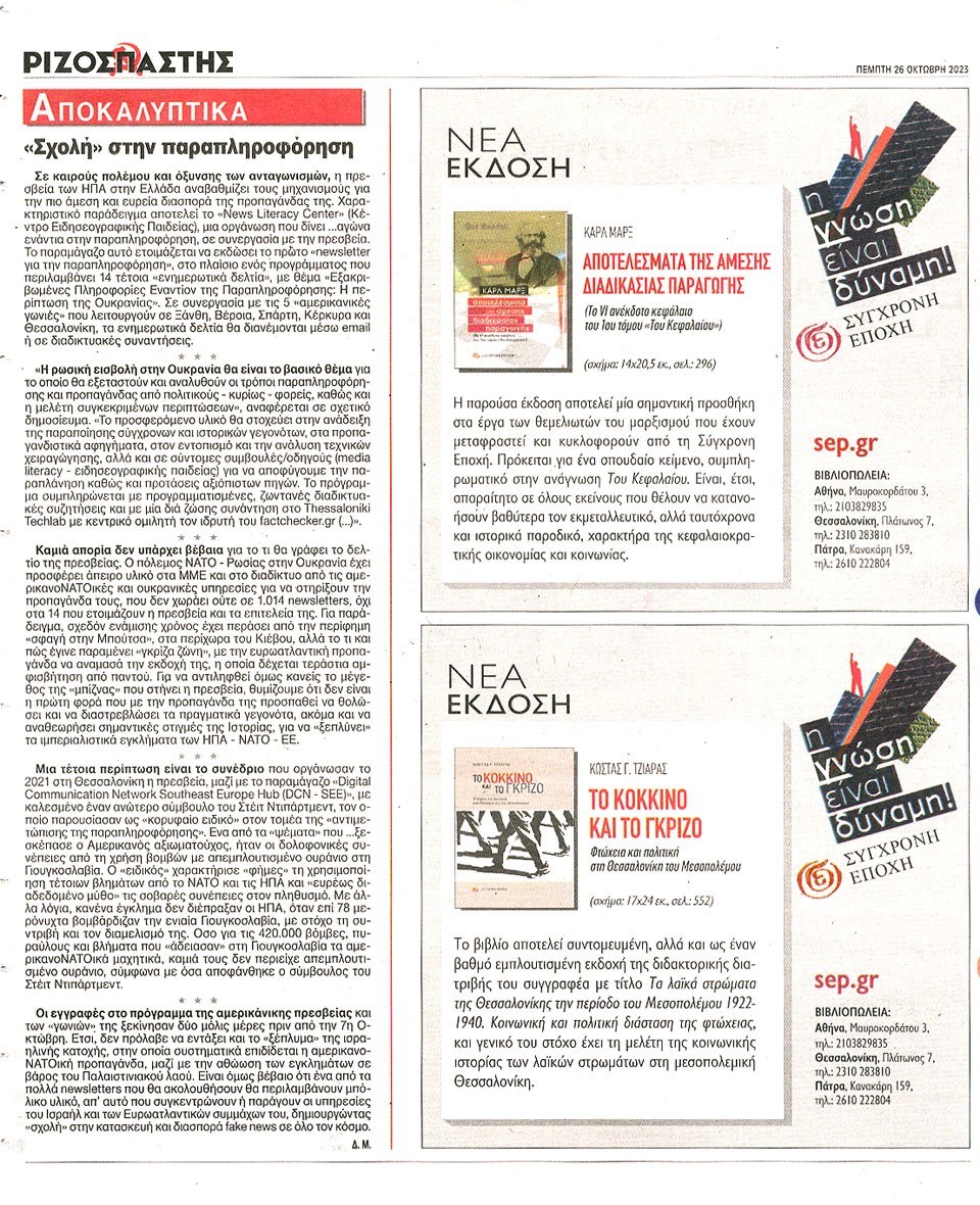 ΡΙΖΟΣΠΑΣΤΗΣ - 26 Οκτωβρίου 2023