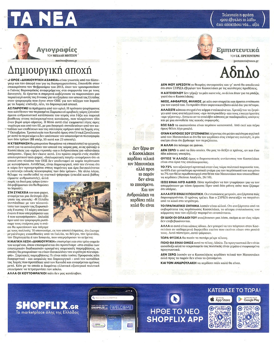ΤΑ ΝΕΑ - 30 Οκτωβρίου 2023