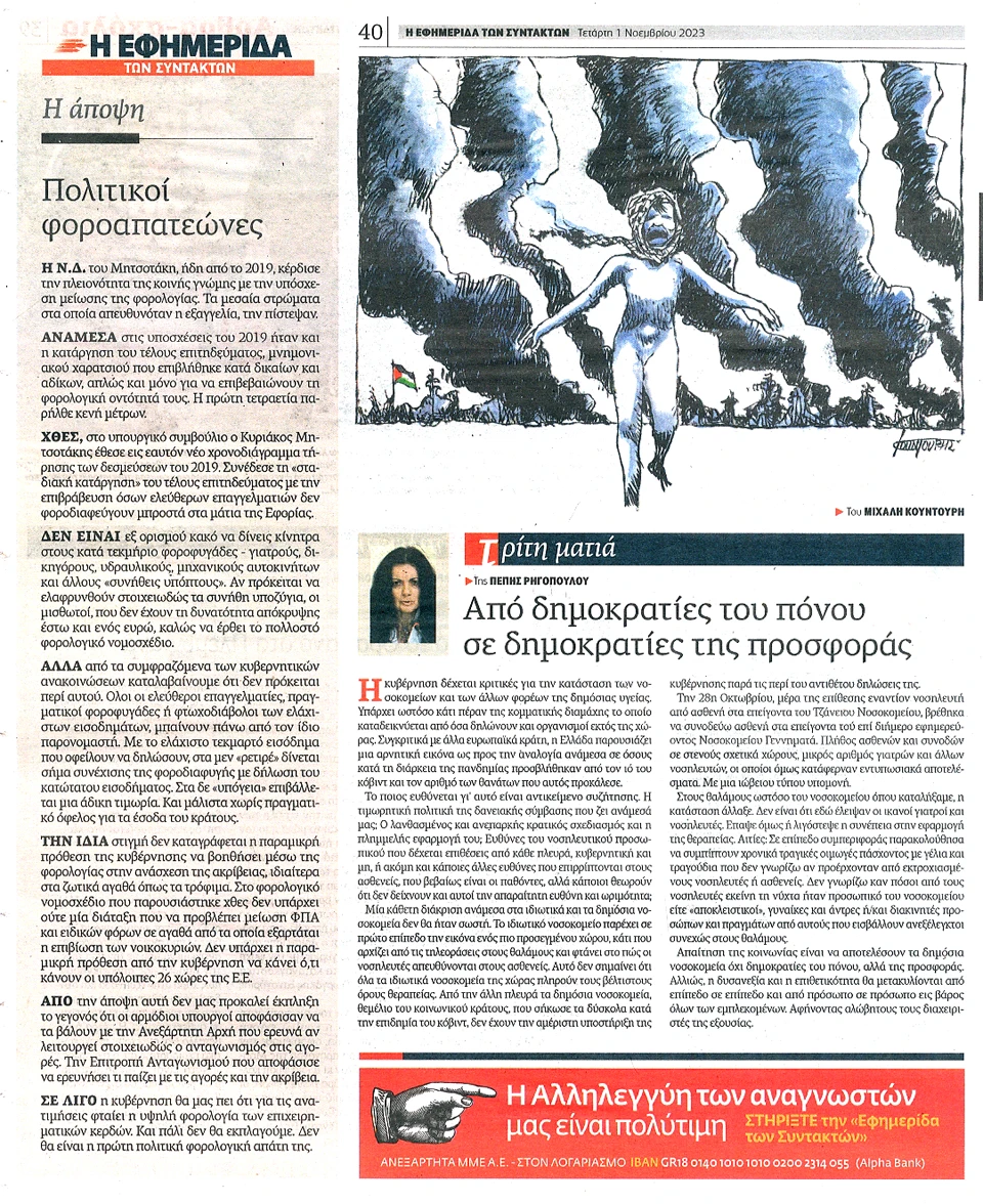 Η ΕΦΗΜΕΡΙΔΑ ΤΩΝ ΣΥΝΤΑΚΤΩΝ - 01 Νοεμβρίου 2023