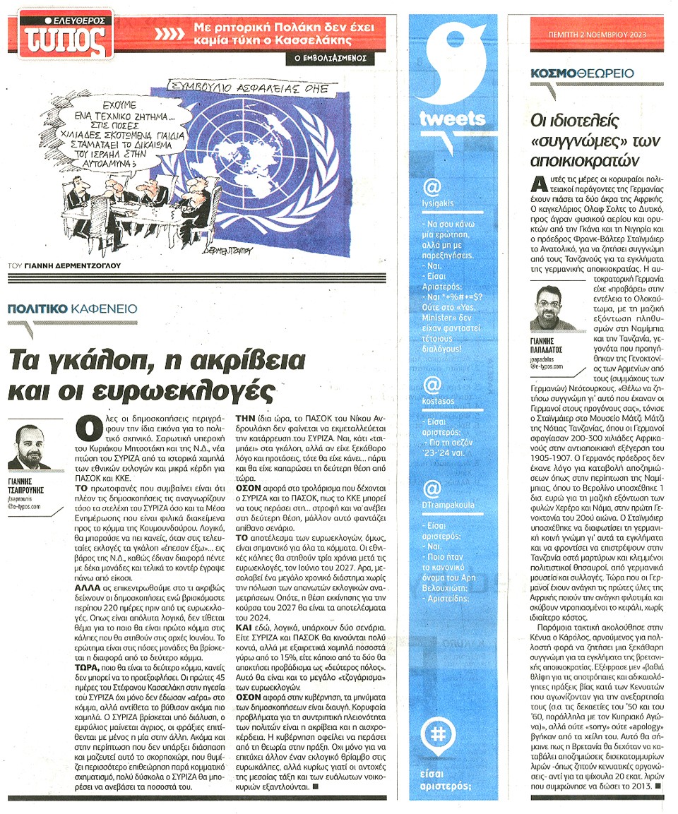 ΕΛΕΥΘΕΡΟΣ ΤΥΠΟΣ - 02 Νοεμβρίου 2023