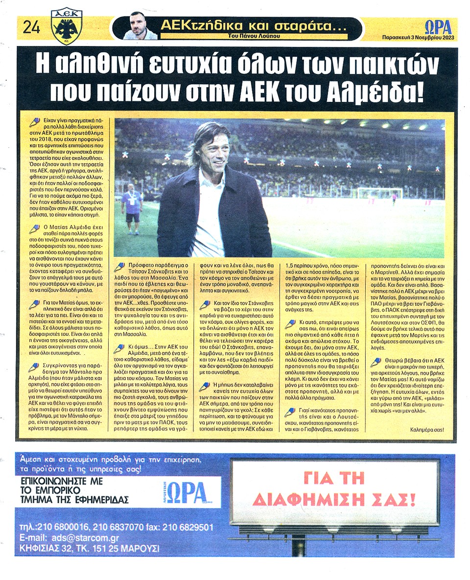 ΑΘΛΗΤΙΚΗ ΩΡΑ ΤΩΝ ΣΠΟΡ - 03 Νοεμβρίου 2023