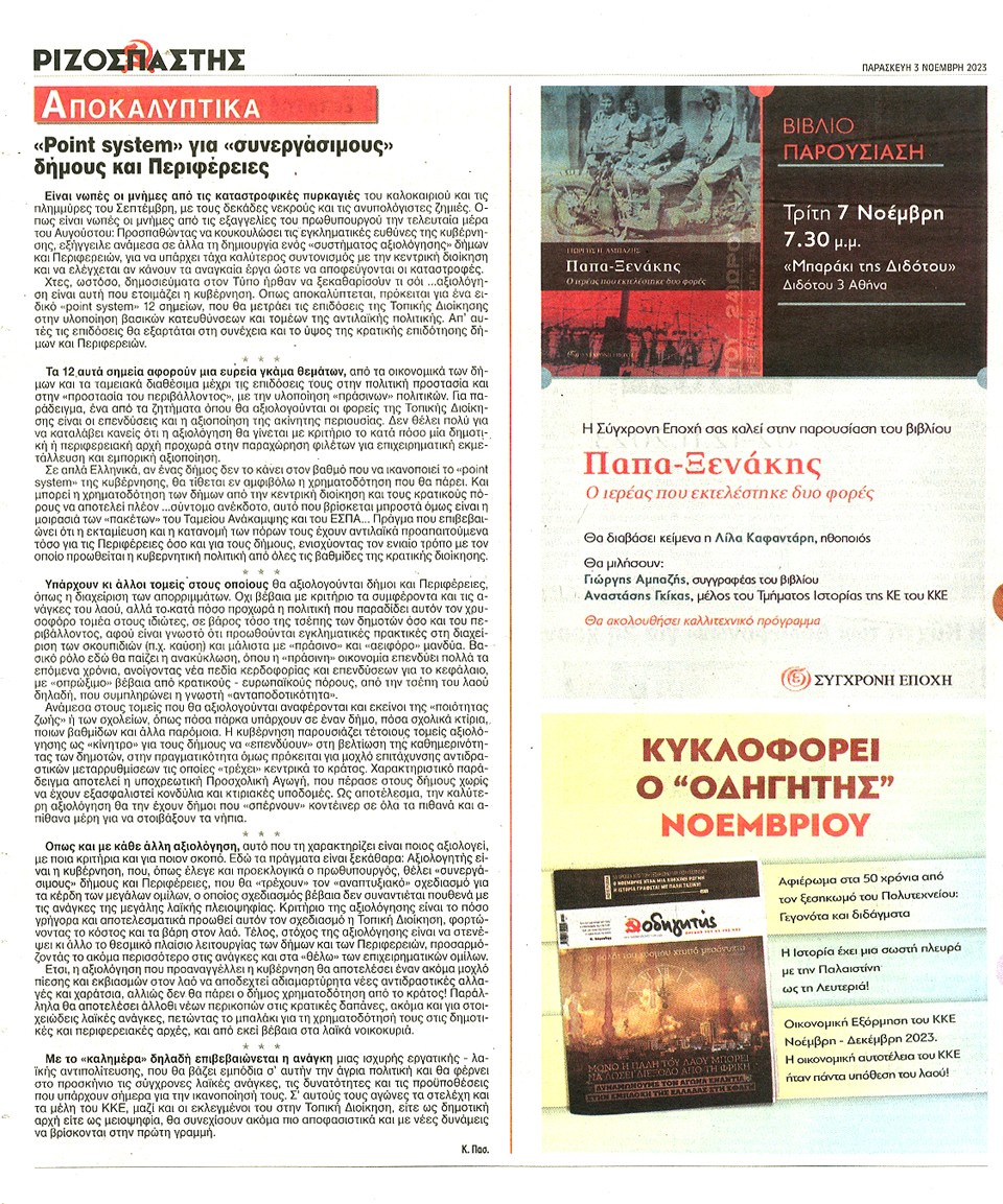 ΡΙΖΟΣΠΑΣΤΗΣ - 03 Νοεμβρίου 2023