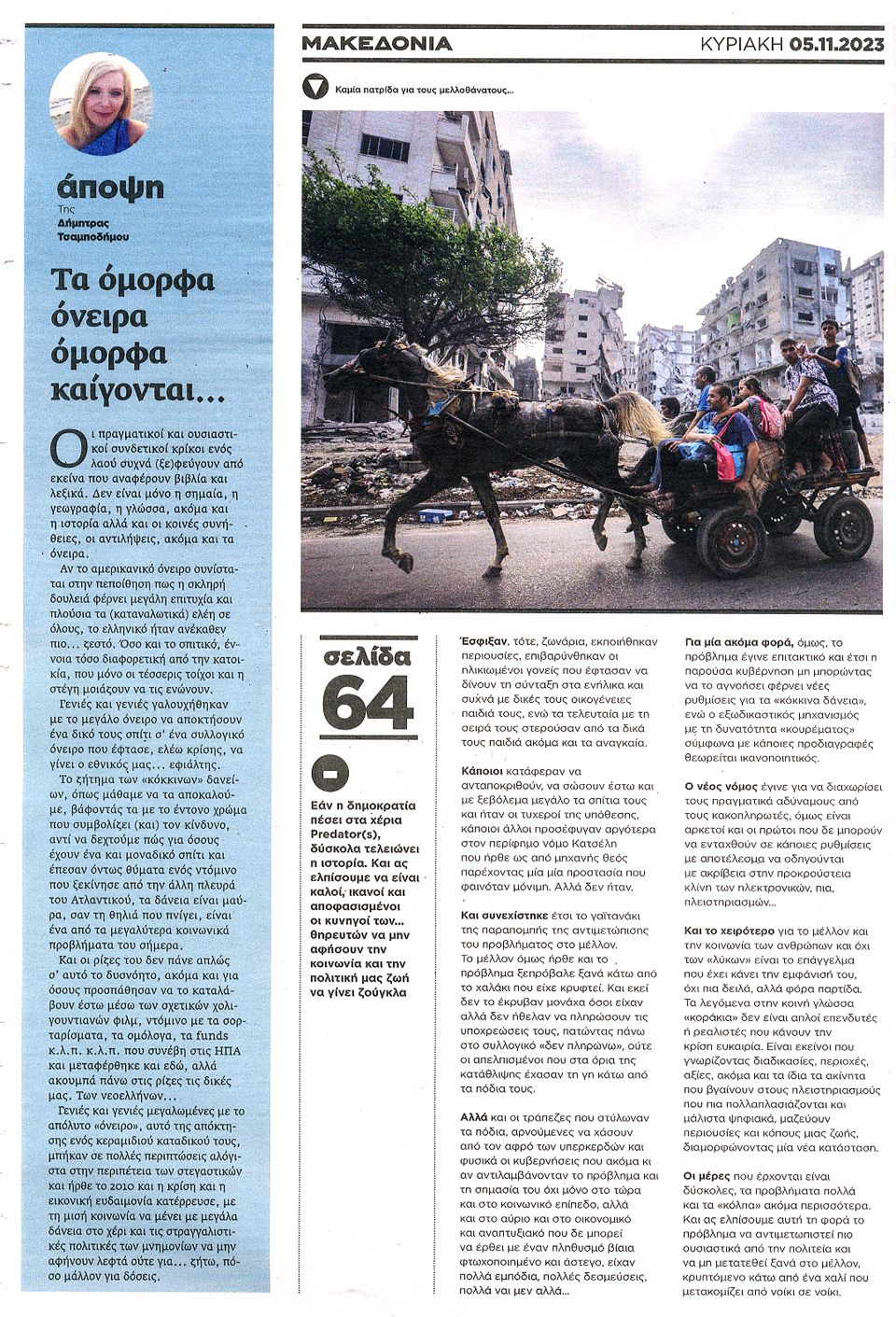 ΜΑΚΕΔΟΝΙΑ ΤΗΣ ΚΥΡΙΑΚΗΣ - 05 Νοεμβρίου 2023