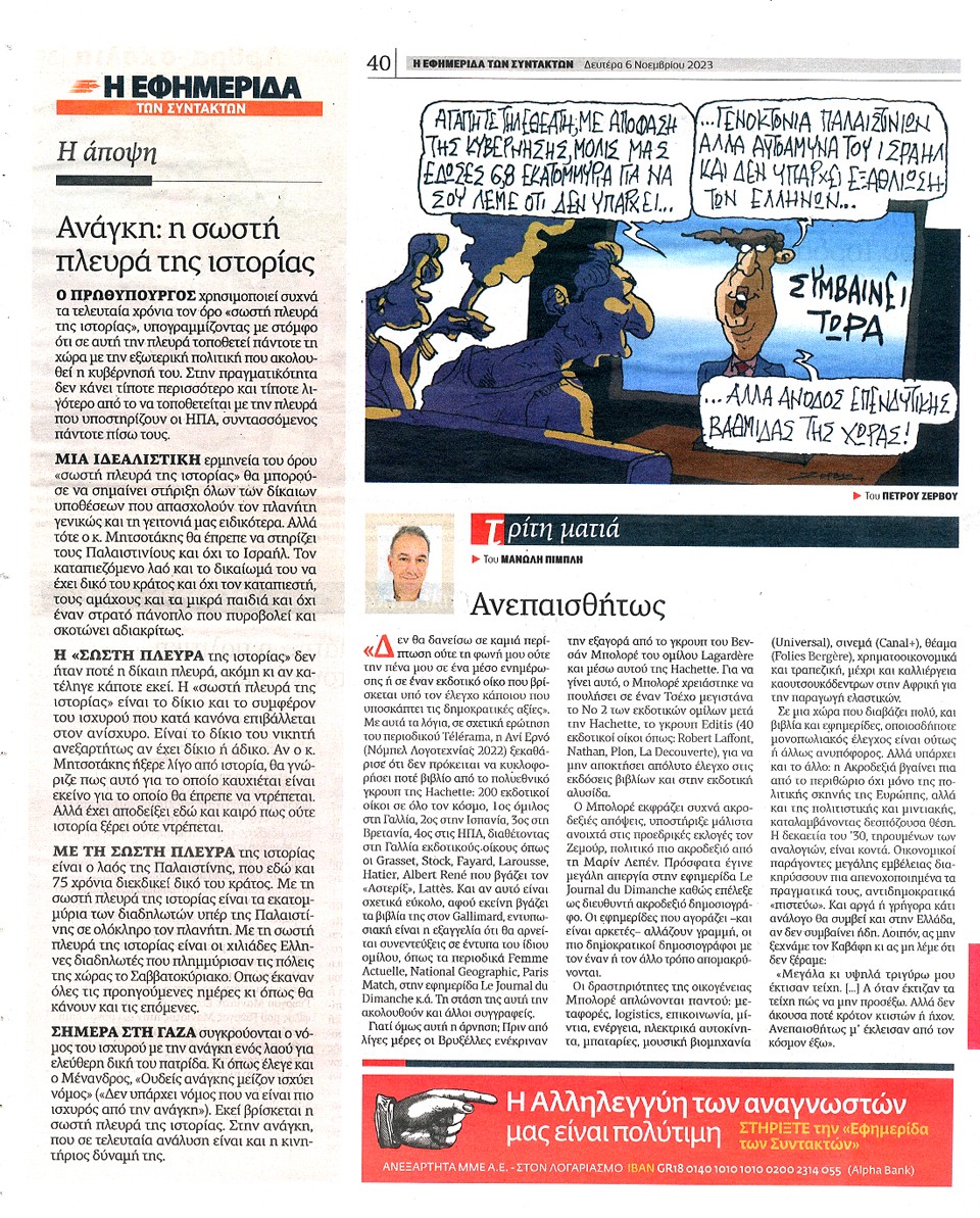 Η ΕΦΗΜΕΡΙΔΑ ΤΩΝ ΣΥΝΤΑΚΤΩΝ - 06 Νοεμβρίου 2023