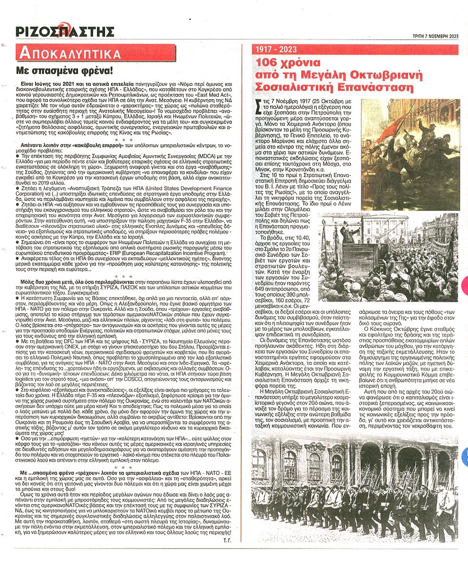 ΡΙΖΟΣΠΑΣΤΗΣ - 07 Νοεμβρίου 2023