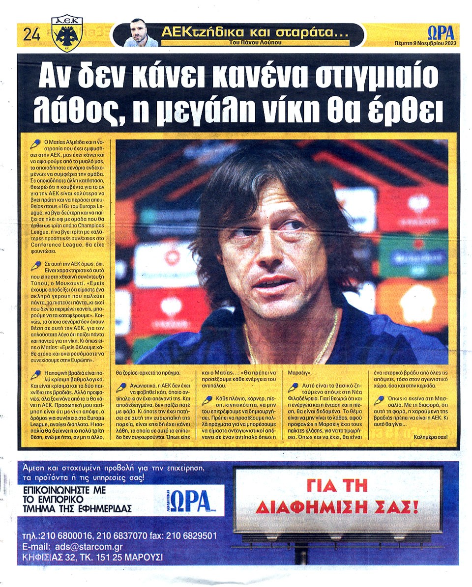 ΑΘΛΗΤΙΚΗ ΩΡΑ ΤΩΝ ΣΠΟΡ - 09 Νοεμβρίου 2023