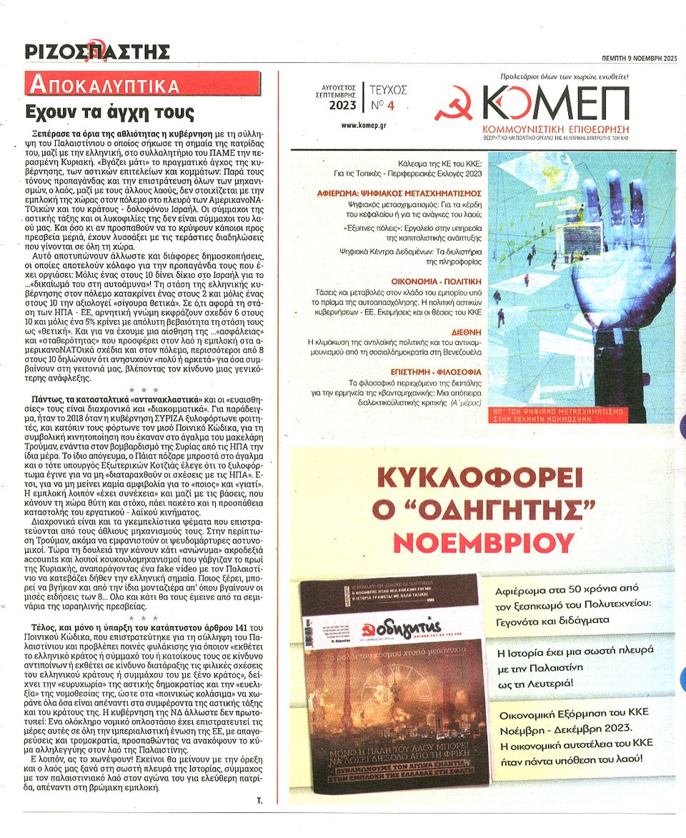ΡΙΖΟΣΠΑΣΤΗΣ - 09 Νοεμβρίου 2023