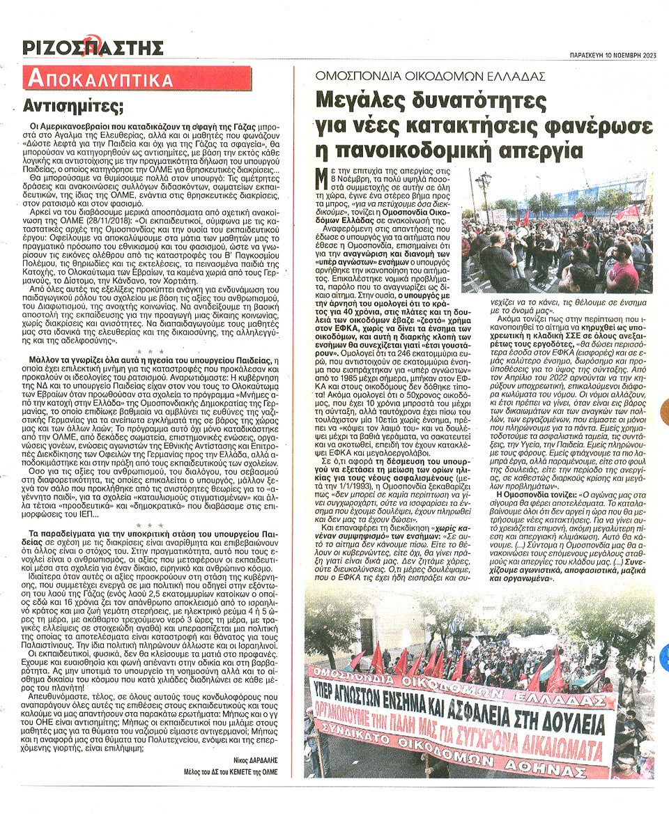 ΡΙΖΟΣΠΑΣΤΗΣ - 10 Νοεμβρίου 2023
