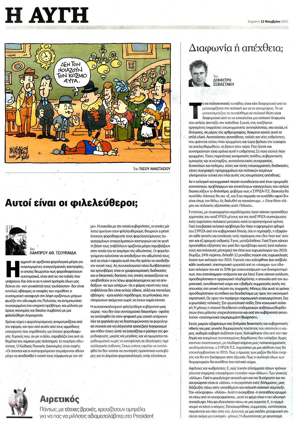 Η ΑΥΓΗ ΤΗΣ ΚΥΡΙΑΚΗΣ - 12 Νοεμβρίου 2023