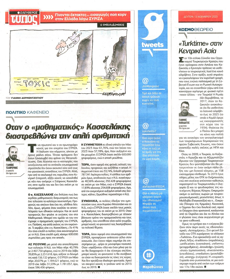 ΕΛΕΥΘΕΡΟΣ ΤΥΠΟΣ - 13 Νοεμβρίου 2023