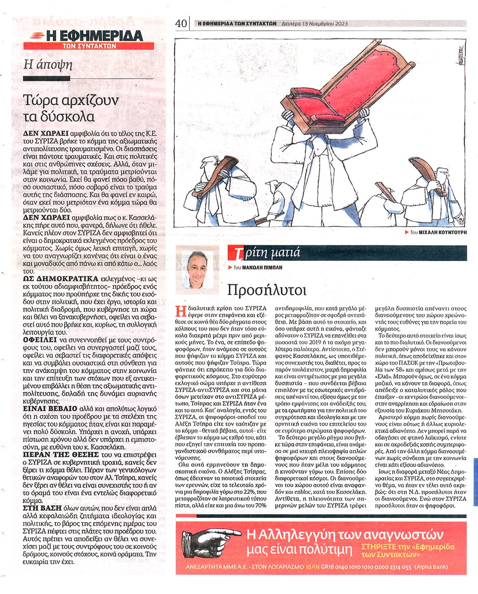 Η ΕΦΗΜΕΡΙΔΑ ΤΩΝ ΣΥΝΤΑΚΤΩΝ - 13 Νοεμβρίου 2023