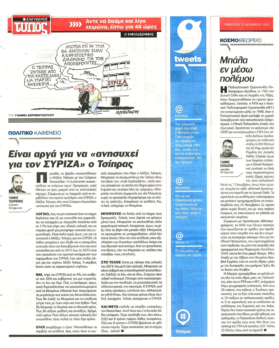 ΕΛΕΥΘΕΡΟΣ ΤΥΠΟΣ - 17 Νοεμβρίου 2023