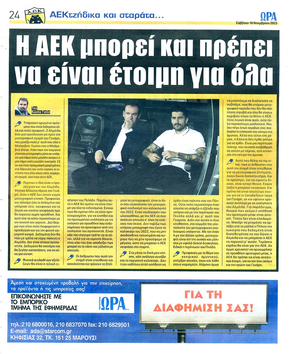 ΑΘΛΗΤΙΚΗ ΩΡΑ ΤΩΝ ΣΠΟΡ - 18 Νοεμβρίου 2023