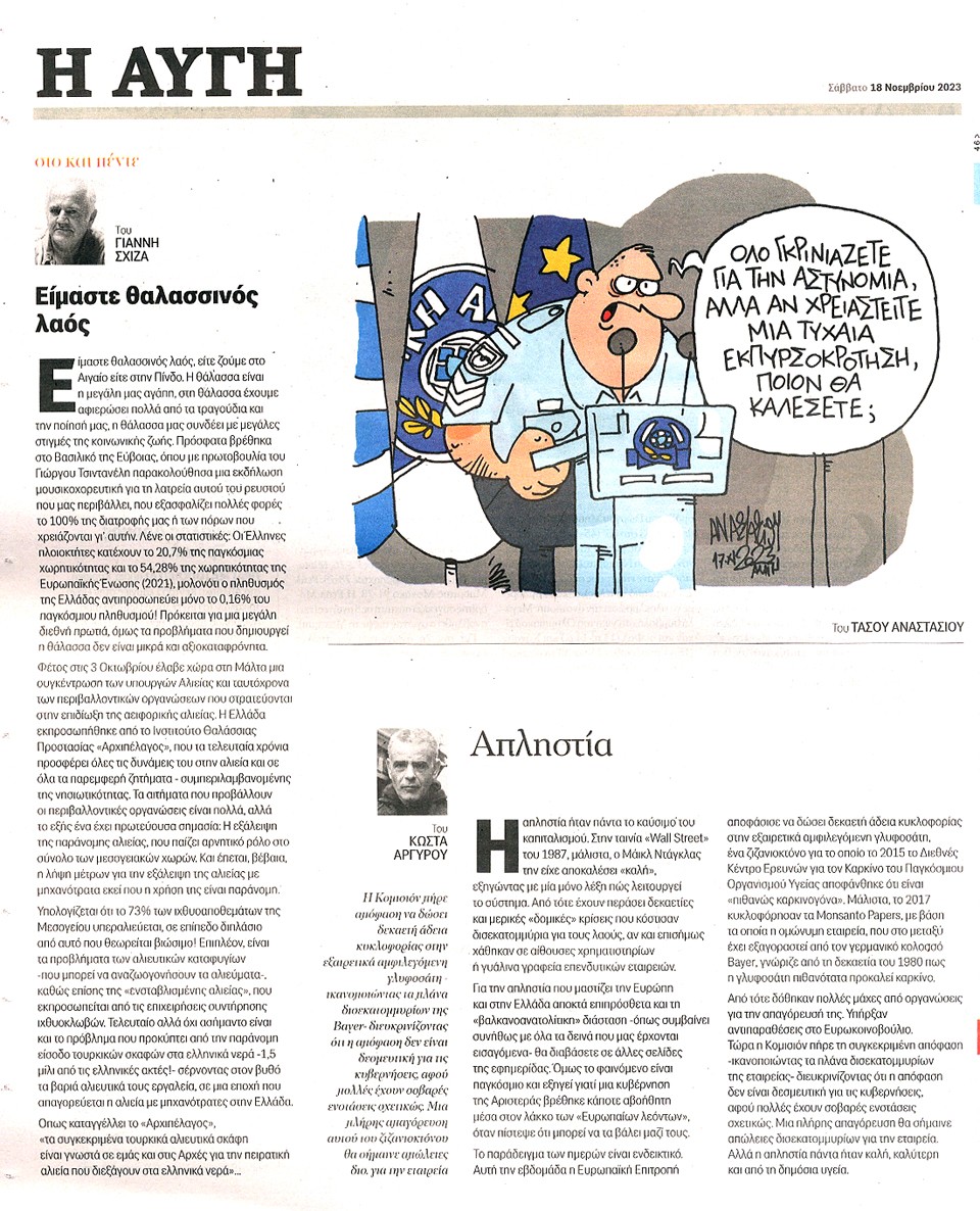 Η ΑΥΓΗ - 18 Νοεμβρίου 2023