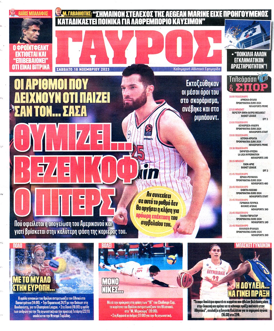 ΠΡΩΤΑΘΛΗΤΗΣ - 18 Νοεμβρίου 2023
